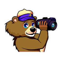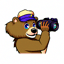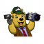 Prompt: a 2D animated University of California at Berkeley's bear Oski holding a camera
