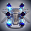 stage 2: High-detail 3D sci-fi drone rendered in sleek hard-surface style. Metallic cool-tone palette (steel, gunmetal, silver) with subtle emissive blue accents. Compact spherical body with symmetrical quad rotors, glowing energy core at the center. Sharp, precise edges and reflective surfaces. Industrial-futuristic aesthetic inspired by AAA game concept art. Dynamic but stable hover pose. Soft studio lighting, crisp shadows, photorealistic reflections. No background (transparent), clean polished finish, centered, full object, production-ready for robotics concept visualization.